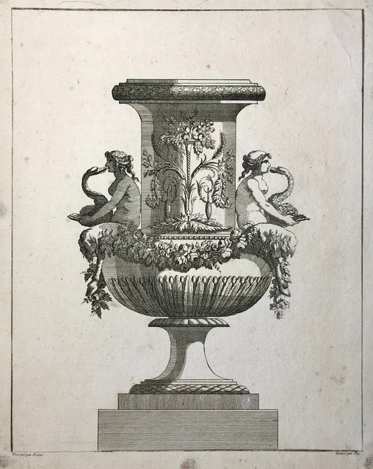 3 Engravings. Designs for Vases by Jean-Louis Prieur (1732-95). French. Late 18th Century. Size: 32.5 x 26 cms.