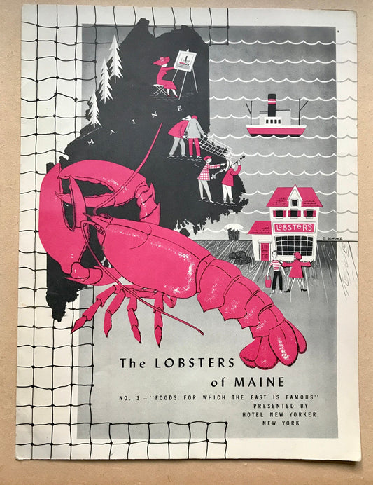 4 Original Menus Presented To Hotel Guests by The Hotel New Yorker in 1950. Artwork by C. Scholtz. Size: 30.5 x 23 cms.