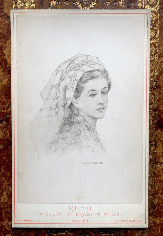 5 Cabinet Cards. Copies of Pencil Drawings of Women by Francis Miles. In Red Cloth Portfolio. Dated 1872. Size: 16.5 x 10.5 cms.
