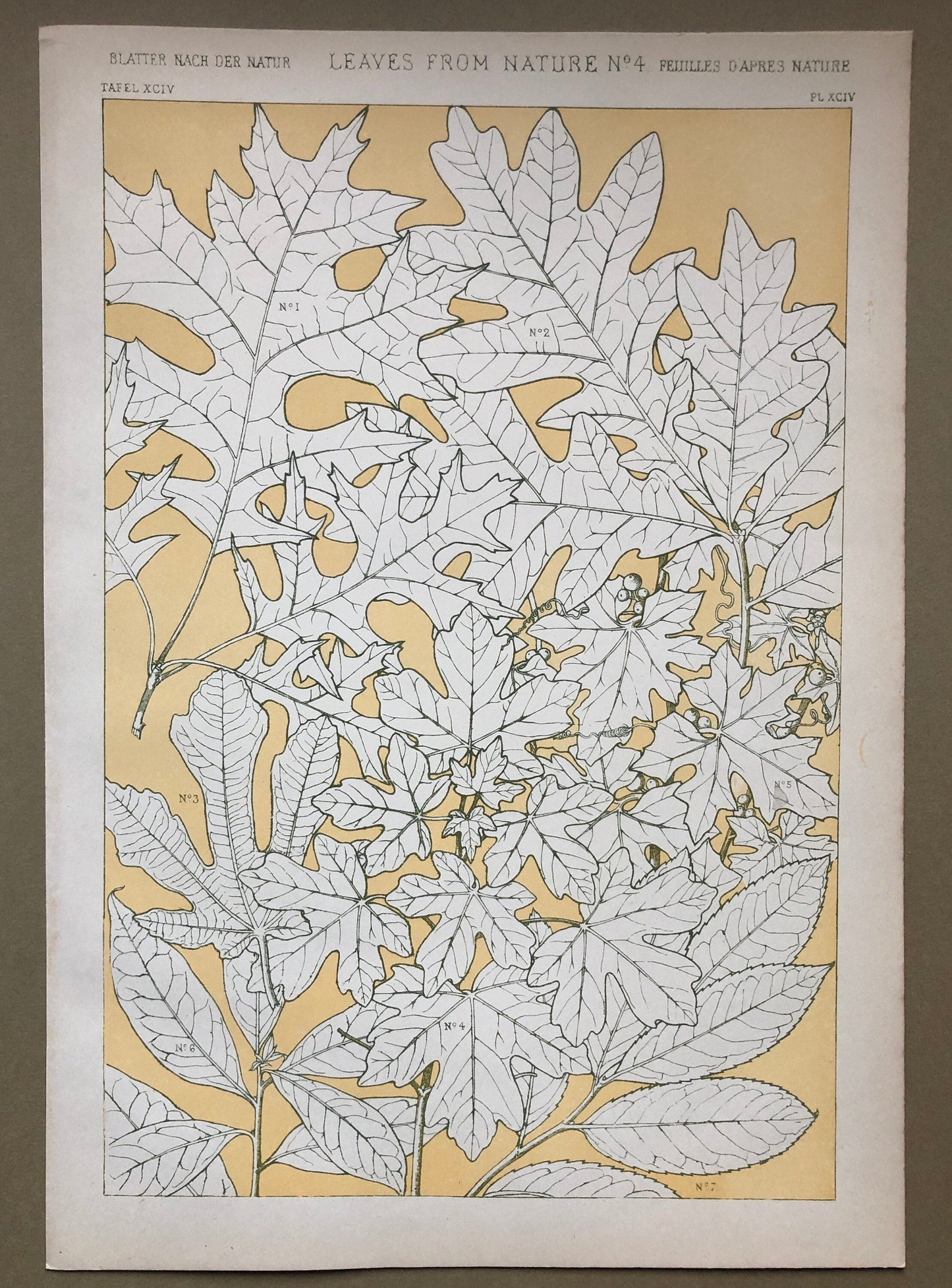 1. Scarlet Oak. 2. White Oak. 3. Fig-tree. 4. Maple. 5. White Bryony. 6. Laurel. 7. Bay-tree.