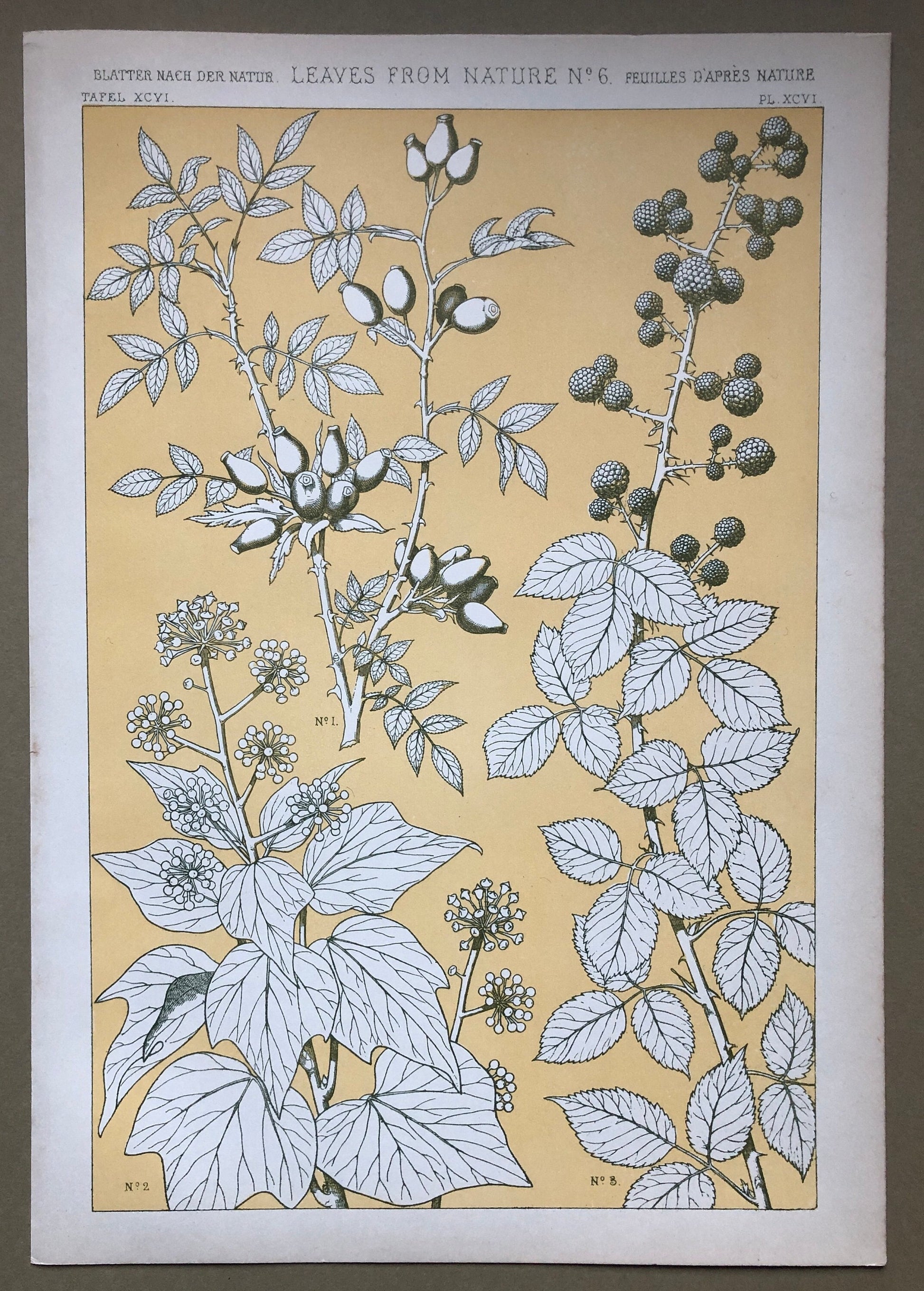 Leaves From Nature No 6. A Plate From The Grammar of Ornament by Owen Jones (1809 - 68). Size: 33 x 23 cms.