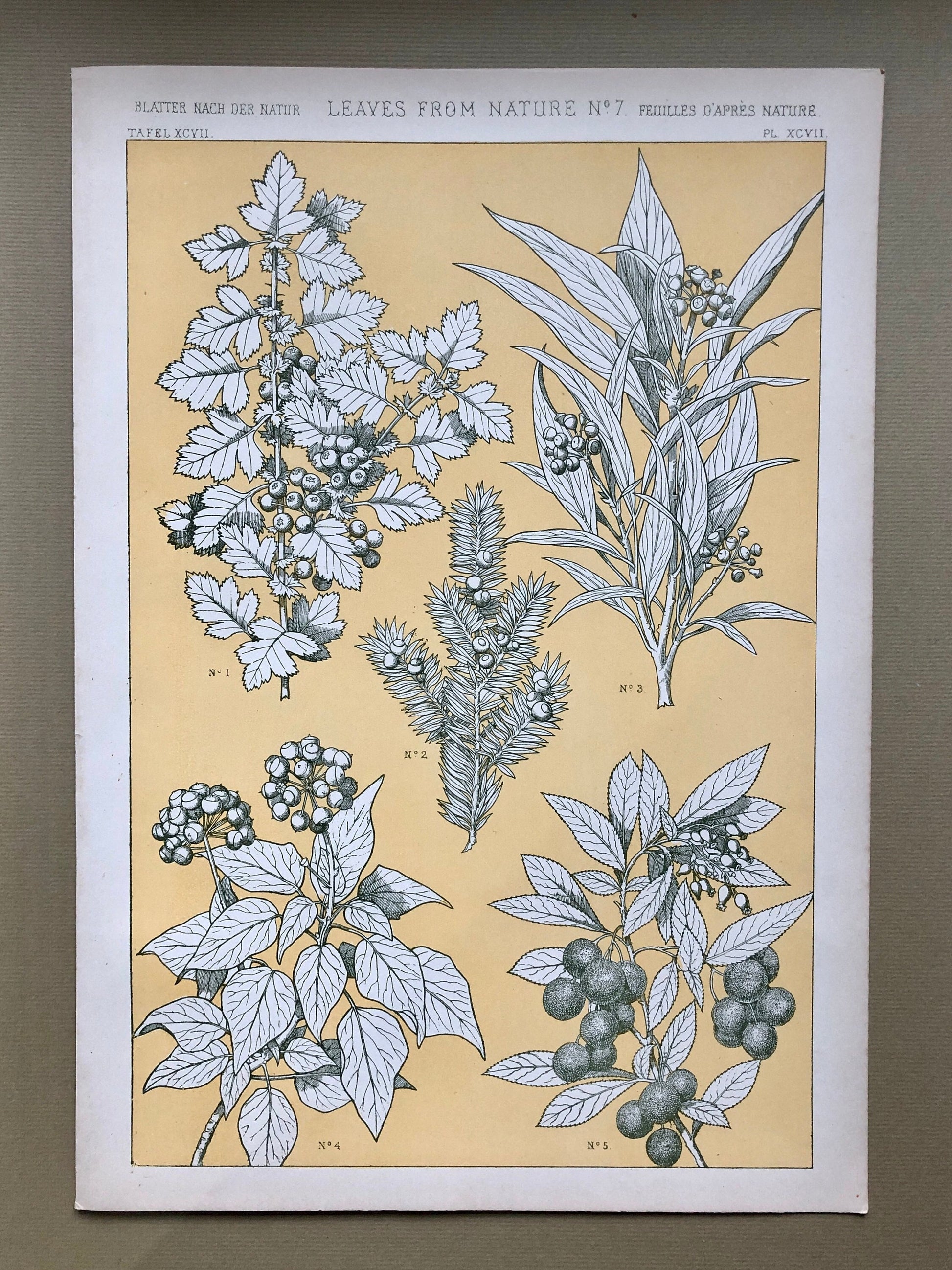 Leaves From Nature No 7. An Original Plate From The Grammar of Ornament by Owen Jones (1809 - 68). Size: 33 x 23 cms.