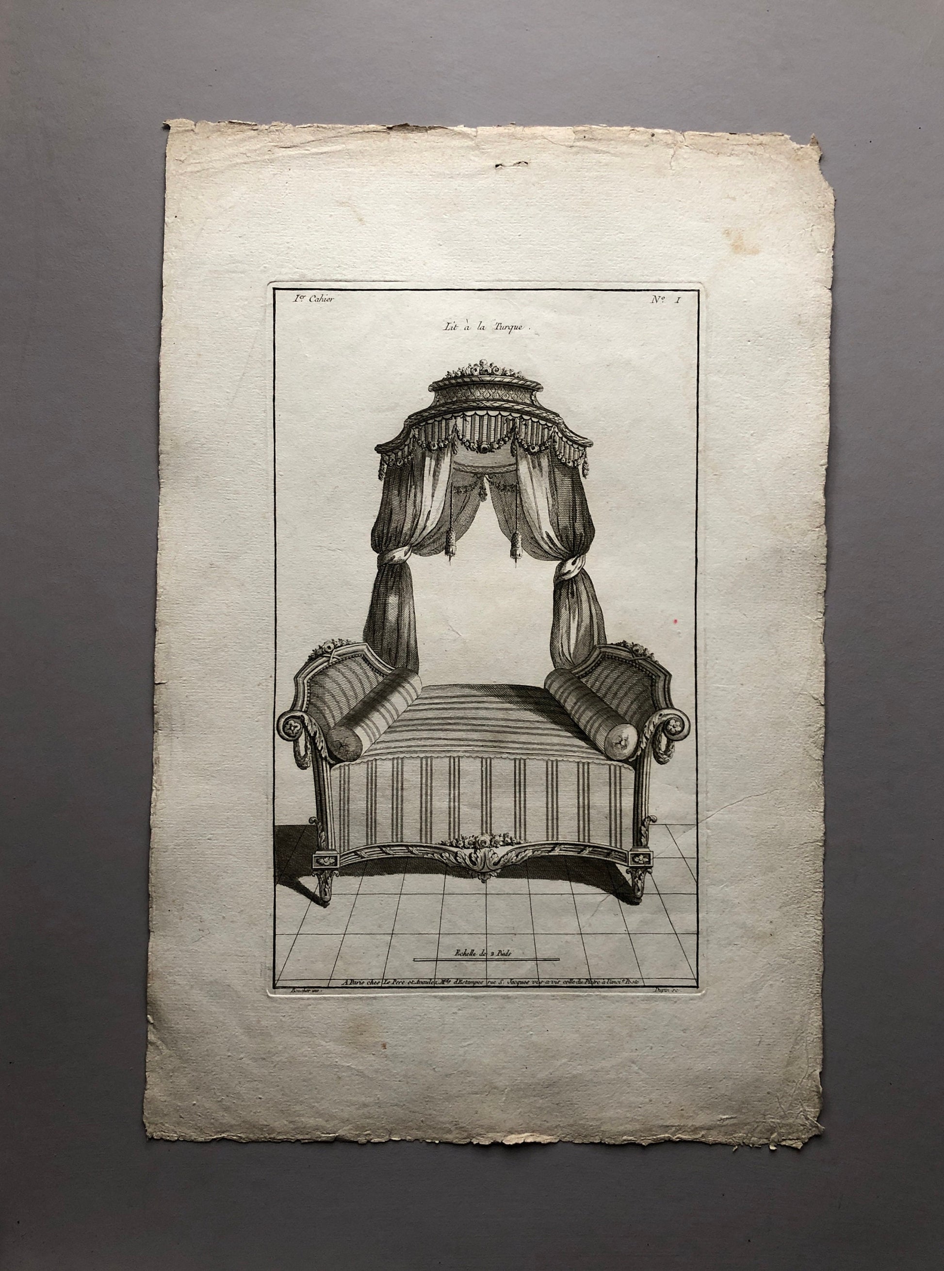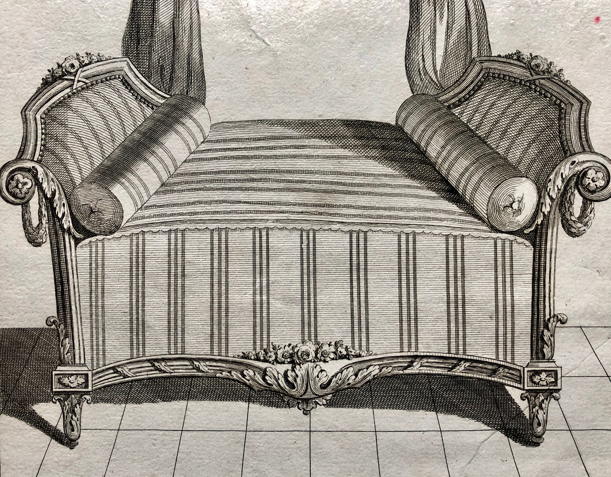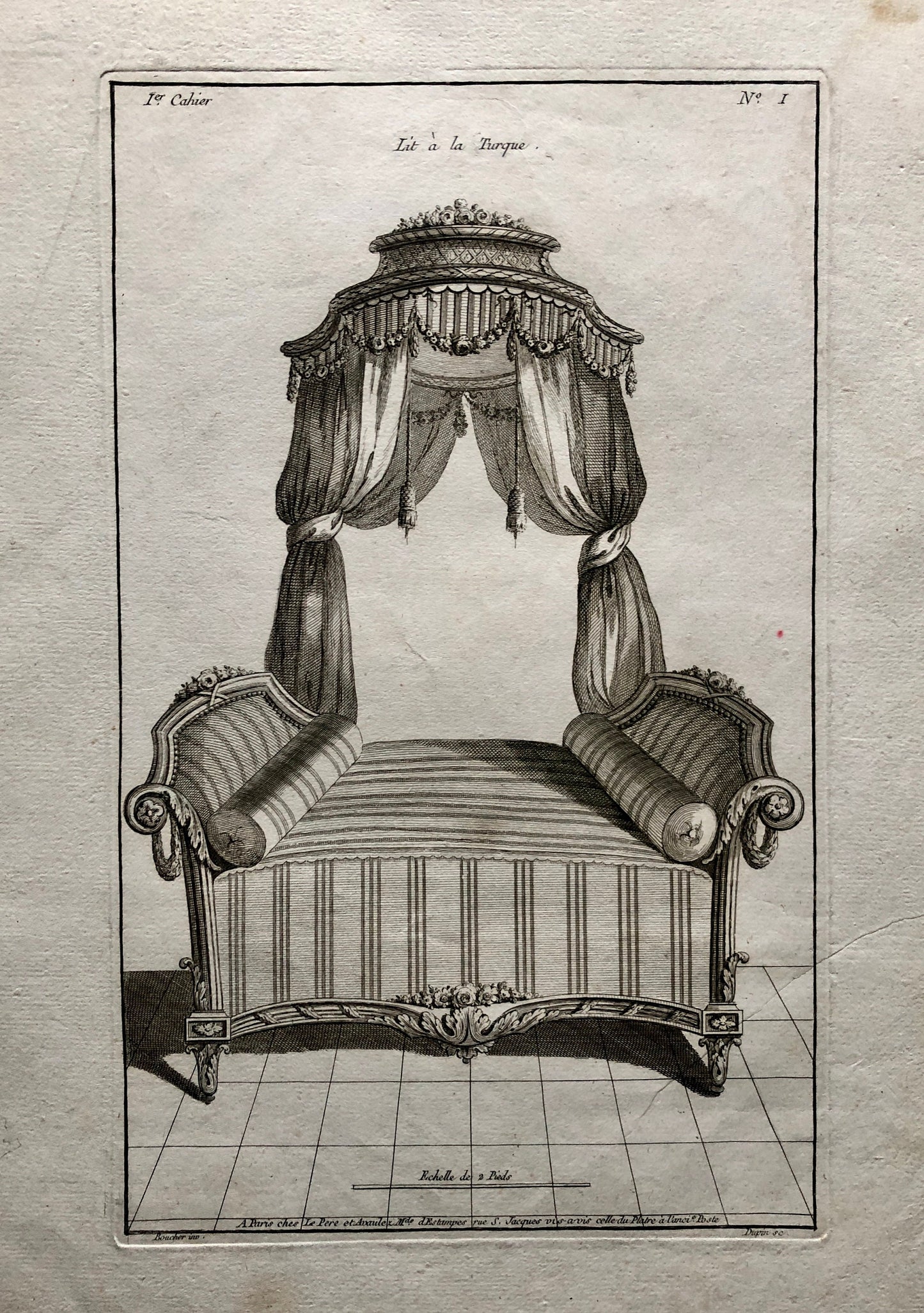 Lit à La Turque. A Copper Engraving From Livre de Meubles by Juste-Francois Boucher. Circa 1780. Size: 46 x 30.6 cms